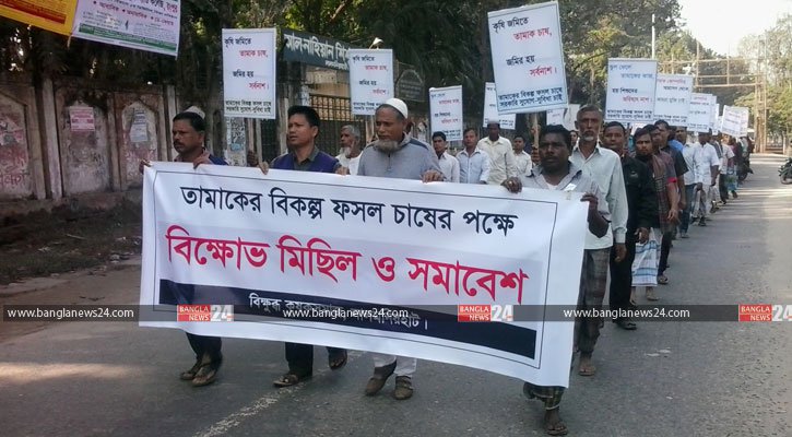 লালমনিরহাট: তামাকের বিকল্প ফসল চাষের পক্ষে বিক্ষোভ মিছিল, সমাবেশ ও মানববন্ধন করেছেন লালমনিরহাটের বিক্ষুব্ধ কৃষকরা।
