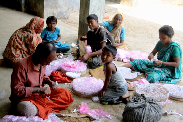 বিড়ি শ্রমিক মুক্তা (৯)। রংপুরের হারাগাছ সাহেবপাড়ায় বসবাস। বাবা ট্রাক হেলপার। পরিবারের মাসিক আয় ২৫০০-৩০০০ টাকা। এ আয়ে ৫ জনের সংসার চলে না। মুক্তা ও তার বড় বোনকে তাই মায়ের সঙ্গে বিড়ি তৈরির কাজ করতে হয়। মাত্র ৭ বছর বয়সই সে বিড়ির কাজ শুরু করে। সপ্তাহের বুধ ও শনিবারে সে মায়ের সঙ্গে বিড়ি কারখানায় যায়। সকাল ৮টা থেকে বেলা ১১টা পর্যন্ত কাজ করে। এ সময়ে সে ৫ হাজার বিড়ির মাথা মোড়ানোর কাজ করতে পারে যার মজুরি প্রতি হাজারে ৭ টাকা। মায়ের কাজের অংশ হিসেবে সে এ কাজ করে। মূলত তার মা সপ্তাহে ১৮,০০০ হাজার বিড়ি তৈরির অর্ডার পায়।