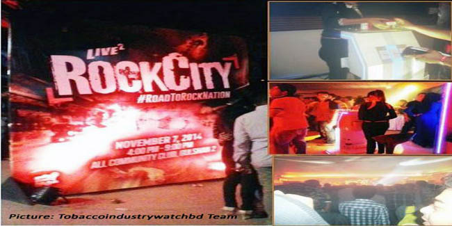 জমকালো রক সিটি কনসার্ট "রোড টু রক নেশন" আয়োজনের নামে রাজধানীর নামি-দামি ক্লাব/হোটেলে চলছে Marlboro সিগারেটের প্রচারণা। আয়োজক লাইভ স্কয়ার হলেও "ফিলিপ মরিস"এর বিজ্ঞাপন প্রচারই অনুষ্ঠনটির আসল উদ্দেশ্য। নগরীর ACCL (All community club Ltd)- এ গত ৭ নভেম্বর অনুষ্ঠিত হল Live-2 Rock city কনসার্ট। হল ঘরের ভেতরে ঢুকতেই দেখা গেল সুকৌশলে "ফিলিপ মরিস"এর বিজ্ঞাপন প্রচারণার দৃশ্য। তরুণীরা বিক্রি করছে Marlboro সিগারেট। প্রতি প্যাকেটে গিফ্ট হিসেবে থাকছে ফিলিপ মরিস এর লগো সম্বলিত লাল রং এর লাইটার। বদ্ধ ঘরে গানের সাথে সাথে চলছে তরুণ তরুণীদের ধূমপান। উল্লেখ্য, এবছর এপ্রিলে শুরু হওয়া 'রক নেশন','রক টাউন' ও 'রক সিটি' নামে রক ব্যান্ড দলগুলো নিয়ে প্রতিযোগিতামূলক এ অনুষ্ঠানটি বাছাই পর্ব শেষে ডিসেম্বরে বঙ্গবন্ধু আন্তর্জাতিক সম্মেলন কেন্দ্রে চূড়ান্ত পর্ব অনুষ্ঠানের মধ্যদিয়ে শেষ হওয়ার কথা রয়েছে। ধূমপান ও তামাকজাত দ্রব্য (ব্যবহার) (নিয়ন্ত্রণ) আইন (সংশোধন) ২০১৩-এর তোয়াক্কা না করে এভাবেই চলছে বহুজাতিক তামাক কোম্পানি ফিলিপ মরিস এর Marlboro সিগারেটের প্রচারণা। তামাকের ছোবল থেকে তরুণ প্রজন্মকে রক্ষা করতে তামাক কোম্পানির এই মৃত্যুবিপণন প্রচেষ্টা বন্ধ করতে হবে।