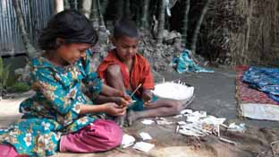 Like Sumi, her cousin Lavlu Islam, 7, was admitted in Class I, but he was engaged in the same work by his parents instead of going to school.