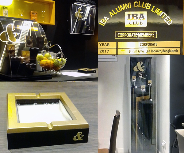 The massive promotion of British American Tobacco Bangladesh (BATB) is going on at the IBA Alumni Club in the city’s posh area Gulshan. The former students of Institute of Business Administration (IBA) under the University of Dhaka are the members of this club. An investigation has found that attractive boxes and ashtray, marked with Benson and Hedges, have been decorated inside the club. The BATB is conducting its promotional activity by enjoying its corporate entity and member of the club. But the Section 5 of the Smoking and Tobacco Products Usage (Control) Act 2005 (Amendment 2013) bans all forms of advertisements of tobacco products. And if someone violates the rule, a monetary penalty will be imposed not exceeding Tk 100,000 or a simple imprisonment not exceeding three months or the both.