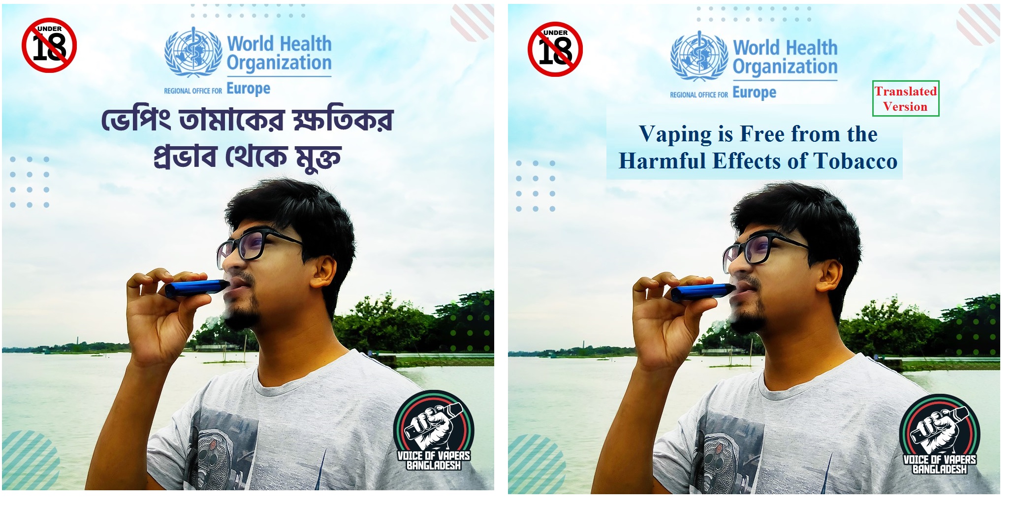 A pro-vaping organization named “Voice of Vapers Bangladesh” is using the name and logo of the World Health Organization (WHO) to promote vaping products. Citing the WHO, the organization said that vaping is free from the harmful effects of tobacco and it is much safer for the lungs. This false and controversial remark was posted on the organization'sFacebook page on 5 October 2020. However, in the ‘WHO Report on Global TobaccoEpidemic 2019’, e-cigarettes were identified as a harmful product for health. Moreover, vaping increases infections and illnesses of the lungs and weakens the body's immune system, which is extremely susceptible to COVID19 infections. Such misleading promotional activities need to be stopped immediately.