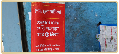 মৃত্যু বিপণন-২মূল্য প্রদর্শনের নামে সিগারেটের প্রচারণায় জেটিআই! রাজধানী ঢাকা সহ সারাদেশে বিভিন্ন দোকানে “SHEIKH 100’s” সিগারেটের মূল্য প্রদর্শনের মাধ্যমে জেটিআই মৃত্যুবিপণন চালিয়ে যাচ্ছে। সিগারেটের মূল্য সম্পর্কে ধূমপায়ীদের অবহিত করার নামে ব্রান্ডের প্রচারণা ...বিস্তারিত |