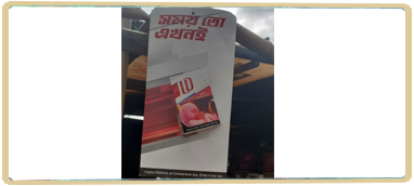 মৃত্যু বিপণন-১আইন লঙ্ঘন করছে আবুল খায়ের! লিফলেটে বড় অক্ষরে প্রতি শলাকা এখনো ৫ টাকা সাথে পানি ও চকলেটের খুচরামূল্য লিখে কৌশলে বিজ্ঞাপন চালাচ্ছে আবুল খায়ের টোব্যাকো কোম্পানি, যা আইন অনুযায়ী ...বিস্তারিত |