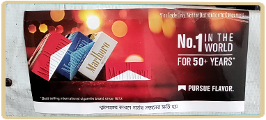 মৃত্যু বিপণন-২চটকদার বার্তায় Marlboro ক্যাম্পেইন! ‘No 1 IN THE WORLD FOR 50 + YEARS বার্তা সম্বলিত স্টিকার দোকানে দোকানে লাগিয়ে Marlboro সিগারেটের প্রচারণা চালাচ্ছে ফিলিপ মরিস। আইন অনুযায়ী ...বিস্তারিত |