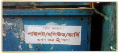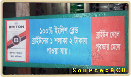 মৃত্যু বিপণন-১বিএটিবি’র অবৈধ স্টিকার ক্যাম্পেইন “প্রতি শলাকা পাইলট/হলিউড/ডার্বি এখন মাত্র ২ টাকা” লেখা সম্বলিত লিফলেটের মাধ্যমে আইন লঙ্ঘন করে নির্বিঘ্নে তামাকের প্রচারণা ...বিস্তারিত |