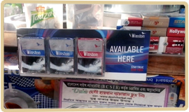 Empty cig packs are placed on a tea stall in Dhaka – TC law ignored |