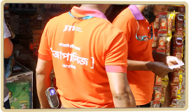 JTI distribution agents promoting brands using t-shirts of company’s signature color and slogan |