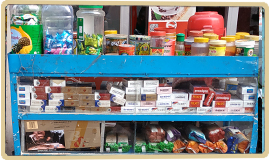 Cigarette boxes being showcased and sold alongside food items |