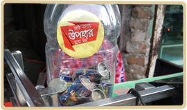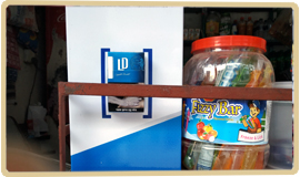 Plastic jar full of gul boxes on display offering retailers gifts for making sales |